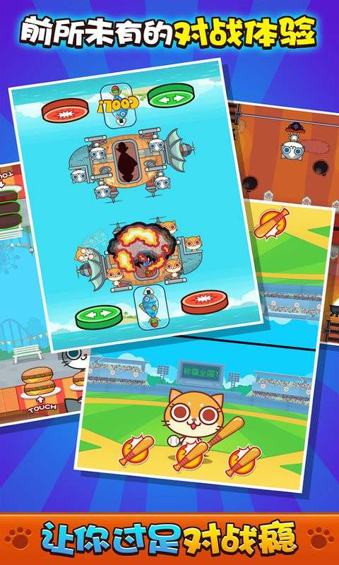而且游戏里的喵星人设计超级萌,背景故事也很有趣,像是宇宙争霸、深海惊魂这些主题玩起来特别带感。适合朋友聚会或者家庭娱乐,调节气氛 totally 不在话下!虽然游戏看起来简单,但操作起来需要反应力和手速,特别是面对强大的电脑对手时,真是考验技术。