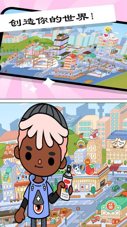 在托卡小镇创造世界里,你可以通过在喜欢的地方用最喜欢的角色创造故事,不断进阶。想要带宠物去学校?大胆去做。把树懒带到滑冰公园?不要犹豫。把医生带到沙龙,给她染绿色头发?当然可以。在托卡小镇创造世界,你才是最大玩家,你可以在玩的过程中编写故事。