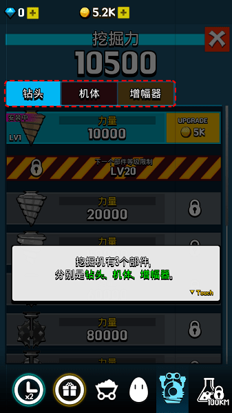 玩家需要赚取更多的金币来升级自己的钻地机,加大钻地机的功率赚取更多金币