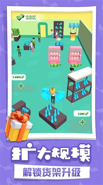 我的时装店游戏画风虽然非常的简约,但是玩法很真实,在这里您将经营着一家服装店,您需要不断的进货补货,让顾客能买得到喜欢的衣服,并及时收银,用赚来的钱解锁更多的场地和设施,让您的服装店声音更加红红火火;