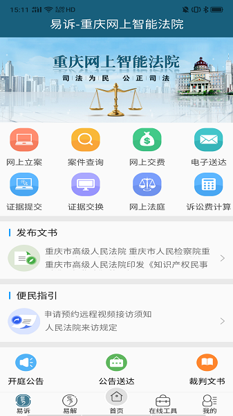 易法院为方便重庆地区当事人网上立案,纠纷调解,案例查询及查询案件信息。