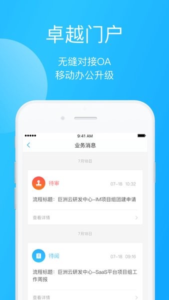 巨洲云cc软件手机版为企业用户提供内部移动办公服务,能够在手机上完成打卡,便捷的签到和签退,可以查看邮件信息,支持在线发送邮件,能够查看实时的审批进度,能够看详细的日程安排,支持在线预定会议室。