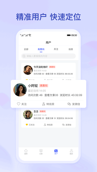 后将素材分享到朋友圈,即可在APP端通过用户浏览数据定位到高意向客户。