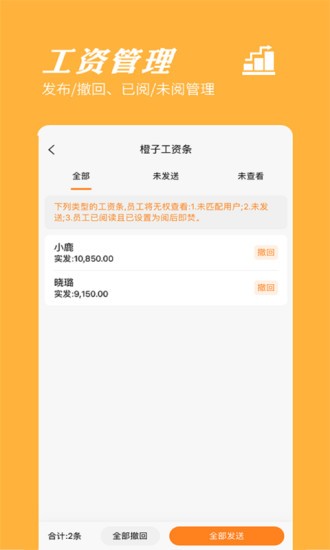 3、橙子工资条绝对是每一家企业都不可或缺的重要的有效率的管理的工具。