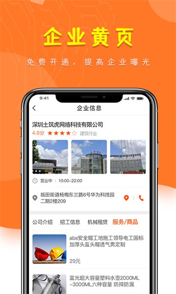 “土筑虎找活企业版”是企业招工应用,连接数千万工友和建筑工程、制造业工厂、生活服务等各企业用工方,帮助企业快速找到靠谱工人、班组、施工队。