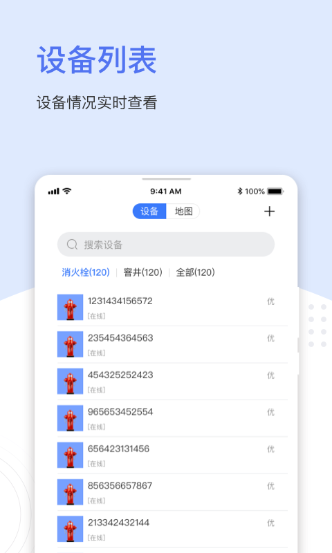 4、支持使用列表和地图的方式展示不同设备的信息,了解设备安装和监测的位置;