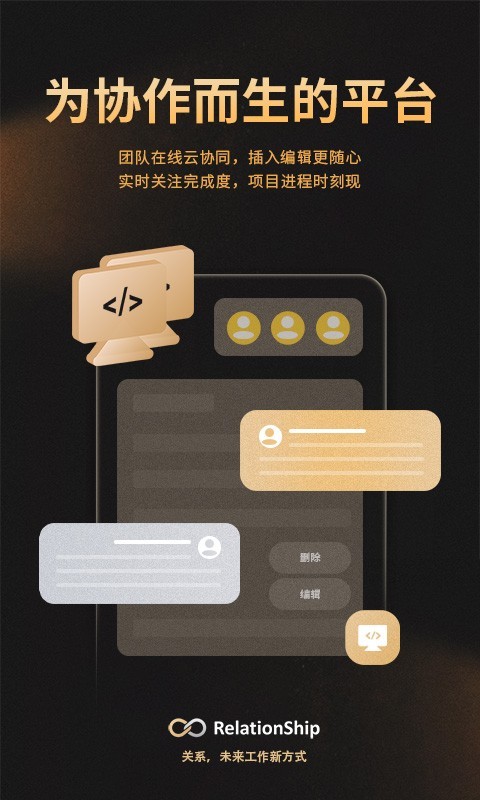 关系,未来工作的新方式。RelationshipAPP,是关系科技集团为企业专心打造的一款工作商务通讯及办公工具,更快、更轻松地处理业务。助力企业实现低成本、高效率协同办公,实现数字化办公新模式。