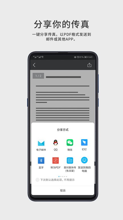 分享给你一键传真分享,一键发送PDF格式的邮件或其他APP。