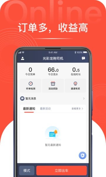 2、在线听单,拥有着独特的接单功能打造能够让系统为你自动的进行听单,接收各种各样的订单.