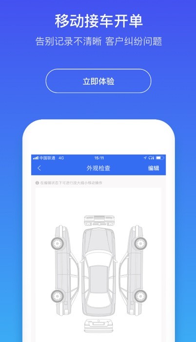 通过手机快捷接车,接车员可通过拍摄照片或视频生成检查报表发送给车主。老板或管理者可有效的监管员工是否做好了查车工作,员工也可在后台查看排名
