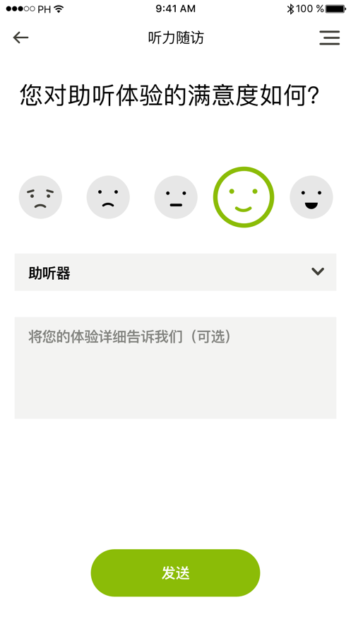 通过消息发送反馈并与听力保健专家就聆听体验展开交流