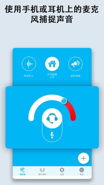 petralex手机专用助听器软件安卓版支持在手机上进行听力测试,普通的耳机就可以轻松搭配使用,能够将耳机里面的声音进行多倍放大,可以抑制噪音,让声音不受干扰,听得更清楚,支持录音,可以将语音转换成文字。