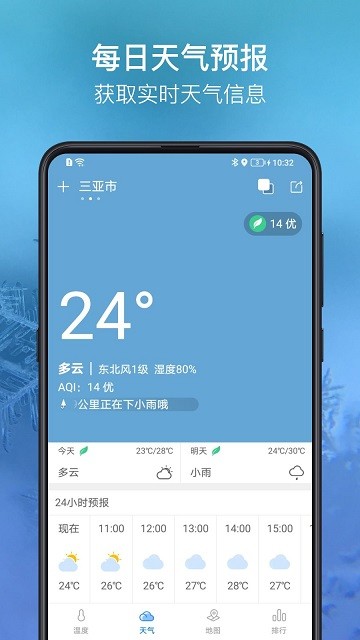 免费现代智能、设计清新的实时电子温度计。监测您所在的地区室内户外的实时温度、体感温度和湿度。为您提供实时天气的温湿度测量、全球温度地图和实时温度排行,让您随时随地了解当前天气状况。