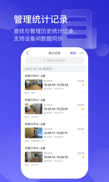 猫头鹰客流统计手机版是用来统计客流量数据的应用工具,离线也能使用。实时的监测人流量,自由设置统计时间,定时统计,数据准确,可以查找与管理历史统计记录,支持设备间数据同步,办公更加高效,方便省心,适用于多种场景!