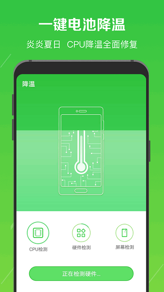 电池降温医生,好用的电池降温神器,现在的智能机发热已经是家常便饭,发热会严重影响电池的寿命,使用这款软件,可以帮助你高效进行手机管理,修复电池损耗,全方位为手机减负降温,保障电池的使用寿命!