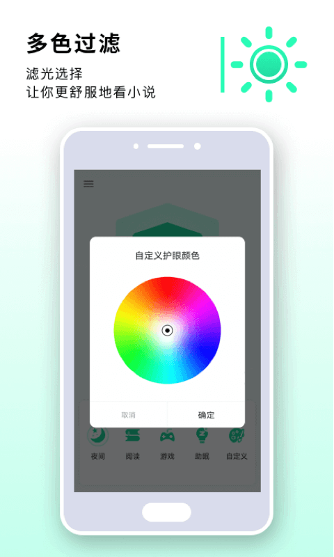 滤光调节:不同情境下,过滤不同光线。读书更轻松,护眼更专业,手机必备护眼宝。