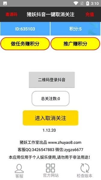 二维码快速登录,全自动后台批量删除清空所有关注.,全网唯一一款抖音一键取消全部关注的软件APP.
