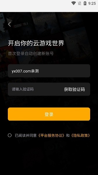 1、下载起飞云游戏app,打开app;在登录界面输入手机号码和验证码登录软件;