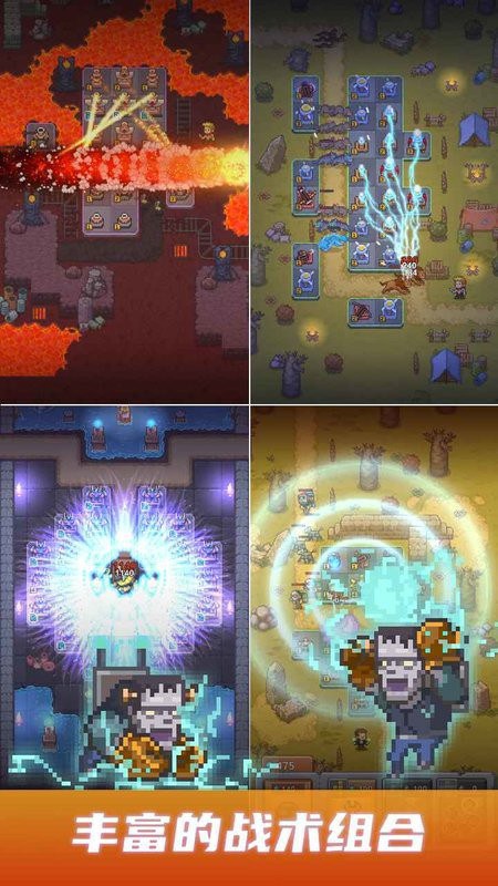 风格迥异的英雄与防御塔,海陆地空的战场与秘境,呆萌搞笑的敌人与NPC,通过复古像素风格,给玩家更大的想象空间。