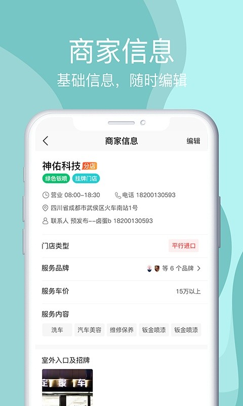 自定义设置商家信息,还能编辑营业时间,地址、联系人以及门店招牌图片;