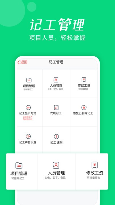 1、拥有记工说明版块,让用户能够了解记工方法和要求,轻松记工;