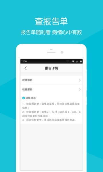 6、报告查询,调阅就诊检查、检验记录、报告详情;