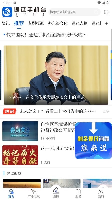 通辽广播手机台app是通辽本地官方新闻融媒体生活服务平台,涵盖各种资讯内容,最新、最热门的新闻资讯实时报道推送,各类广播直播、电视节目在线点播观看,还提供各种便民生活服务查询体验,更多精彩等你发现,便利大家的日常生活,好用又方便!