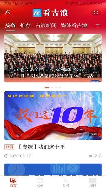 看古浪app为古浪县市民带来了本地最全的新闻内容,古浪新闻、乡镇动态、媒体看古浪、乡村振兴、新闻发布等多个频道,从不同的视觉来让全市人民了解古浪的变化和大事件,城市变化需要大家共同努力。