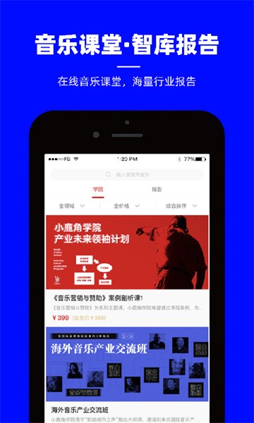 小鹿角app是为热爱音乐的人打造的音乐社区,在这里能够认识非常多热爱音乐的同好朋友;聚合音乐行业细分领域热点资讯,热点文章、数据报告、招聘信息、音乐版权等,全面的内容都有,为用户打造一个价值的音乐社区;参与话题交流,分享自己对流行音乐、音乐剧、嘻哈电音等音乐娱乐领域的见解,和更多人掌上交流,轻松入驻成为专栏作家,在平台参与内容创作;同时,在小鹿角手机版内还包含音乐学院版块,旨在推送在线音视频课程,都是与音乐学习相关的内容,满足音乐爱好者的学习需求。