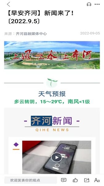 《新齐河》客户端是齐河县融媒体中心倾力打造的新闻资讯+智慧城市客户端,我们为齐河县手机用户提供中心生产的音视频、图文资讯,便民服务,新时代文明实践等方面的内容和服务,在这里用户可以随时随地查看民生话题,关注社会动态,感受更高效、便捷的服务体验。