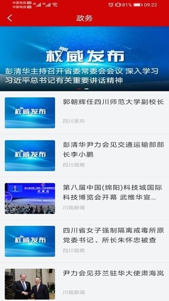 四川发布政务客户端是全省各级新闻发布会进行权威发布的归口平台,同时聚合各个省级部门、市州、县(市、区)的政务客户端,提高行政效率。在移动舆论场上的四川省集合对外宣传、建言建议、便民服务等功能的省级平台。