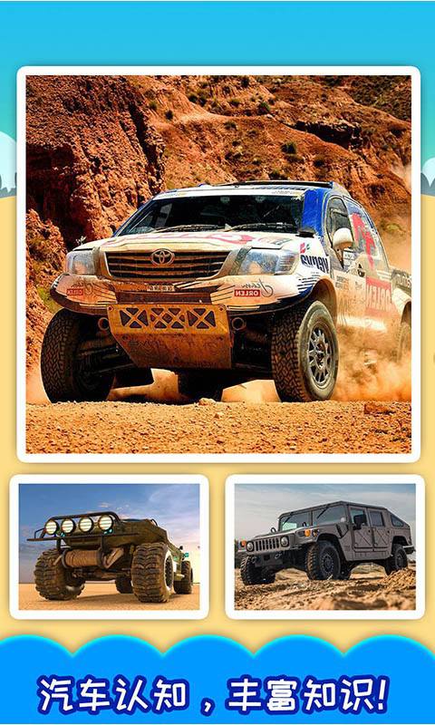 3、汽车拼图:将不同的零件,按位置拼好,组装成汽车,非常有成就感;