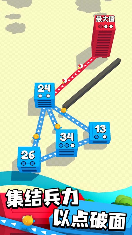 游戏中具有丰富的关卡内容,各类的障碍与道具,提升了游戏的策略性与选择性,玩家可以通过自己的判断规划处最为合理的一条出兵路线,用智慧来领先其他选手!目标只有一个,就是占领所有据点,祝你好运参赛者!