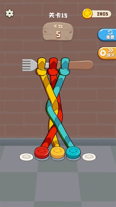 烧脑闯关玩法,解开所有绳结,在有限的步数内,解开一切绳结的关卡。
