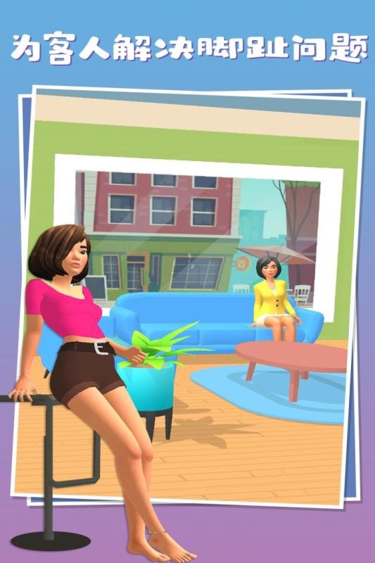 小姐姐的足疗店最新版是全新打造设计的模拟经营类型手游,以围绕足疗店的经营展开,采用简约的卡通画面呈现,提供各种美甲设计,还可以通过足疗美甲的常规操作,满足不同客人的脚趾问题,让顾客的脚趾变得更好看,操作起来简单易上手!