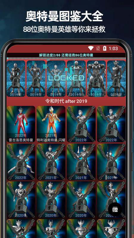 奥特曼图鉴是包含了上百种奥特曼传奇英雄形态的变身相机。需要您靠自己的实力,拯救奥特曼。