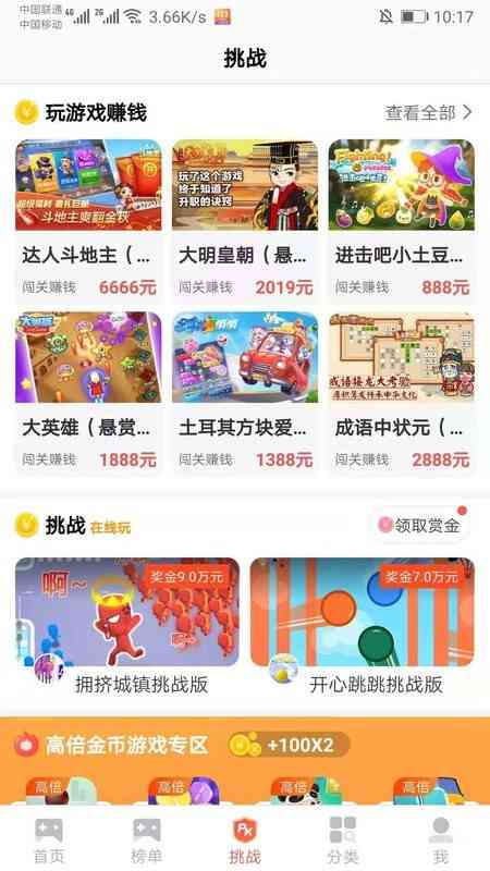 挑战游戏设立万元奖金池,只要参与游戏,即可分得专属奖金,人人有份,多玩多得!奖金周结,定时发送。