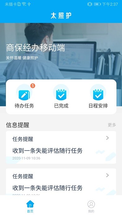 太照护app可供参保人和经办人使用,参保人可以查看最新的护理相关政策,支持在线进行待遇申请,可以完成失能评估,支持对护理人员做出服务评价,经办人可以查看每天的待办任务并及时的处理,可以查看详细的数据统计!