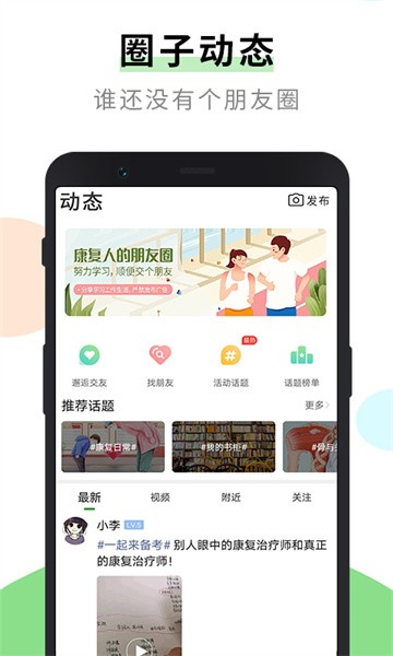 最近的更新增加了“学霸挑战赛”和优化后的“康复题库”,让学习变得更有趣也更高效。特别是“动态”页面的改进,方便用户找到同行交流,这点我觉得特别棒。对于像我这样的学生来说,这种平台不仅能扩展职业网络,还能获取最新的行业资讯,真是个宝藏。