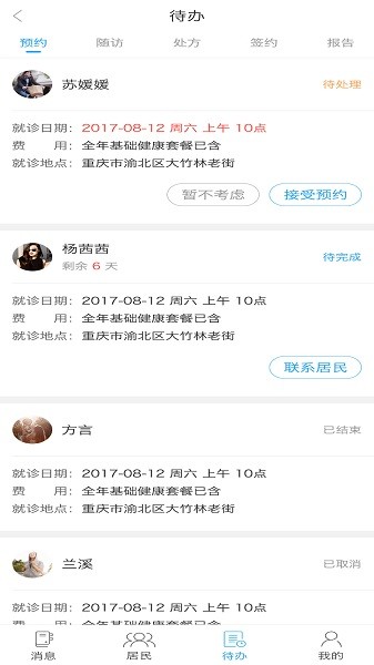 在线查看签约信息,预约信息,居民的健康信息;