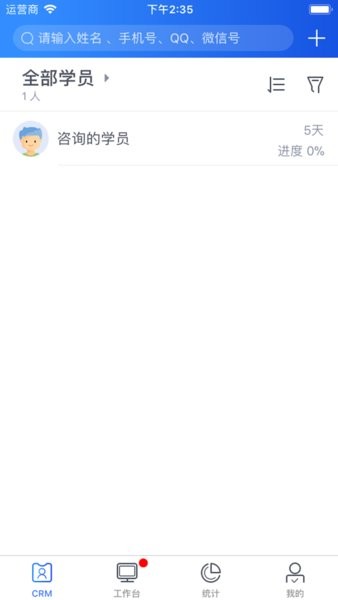 学员通为湖北新文道全力打造的一款咨询老师用于提高考研学员关系管理的软件,学员通CRM系统高效准确录入学员信息,流畅的学员分配、协作、释放、归档等操作,多样化的录入支持,让咨询老师可以随时随地记录考研意向学员情况,及时跟进。