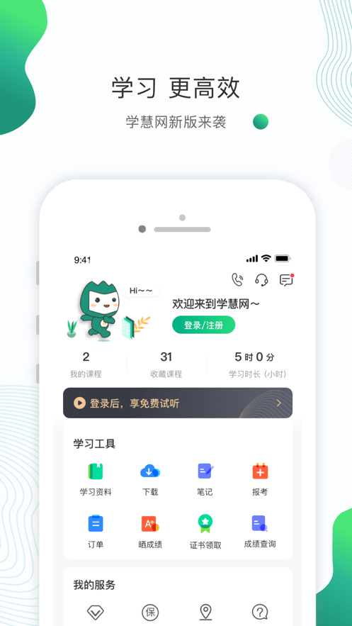 学慧网app官方最新版提供了丰富的职业教育服务,包含有学历提升、公考、会计、行政管理等,可以在线查成绩,可以听免费课和购买课程,这里有丰富的学习资料和历年的真题资源,可以收藏课程,有最新的名师课程直播预告,便于及时做好听课安排!