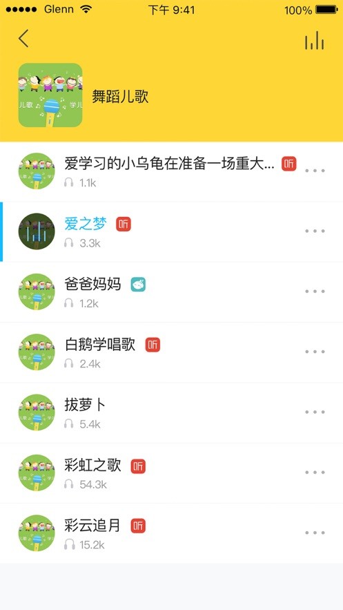 打开应用,点击儿童歌曲可在线收听一些儿童的歌曲