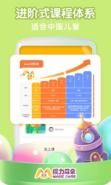 专注4-12岁小朋友在线英语教育,有魔力的课堂,让孩子爱上说英语;聘请具备TEFL、TESOL证书及三年以上教学经验的北美外教;欧洲语言共同框架(CEFR),且经过国际主流教材本土化改编,精心打造魔力互动式课堂教材;进阶式的课程体系,为您的孩子量身定制的课程。