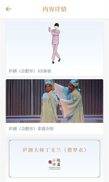 2、有了它,你可以体验安徽省非物质文化遗相关的丰富的视频、图文和三维模型资源。