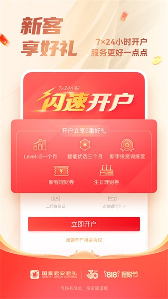 3、手机证券开户,一分钟成为尊贵客户,畅享更全面的投资理财服务;