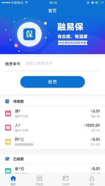 它还支持直接扫描缴费单,快速查询是否收款成功,帮你省去很多麻烦。自动统计保存收款信息,方便对账;未收款和待收款的对象也会自动提醒你,特别贴心。特别是和保险公司保单系统打通后,可以直接操作待缴保单,取代传统的POS刷卡模式,既安全又快捷。