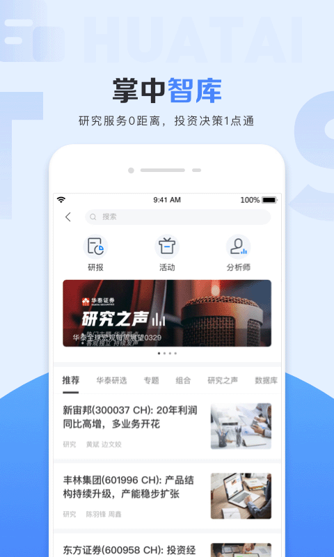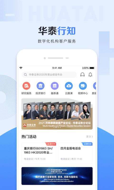 专业的研报内容带来不同领域中全方位的深度解读。路演、调研活动预告、直播及回顾,客户不会错过的精彩活动服务。