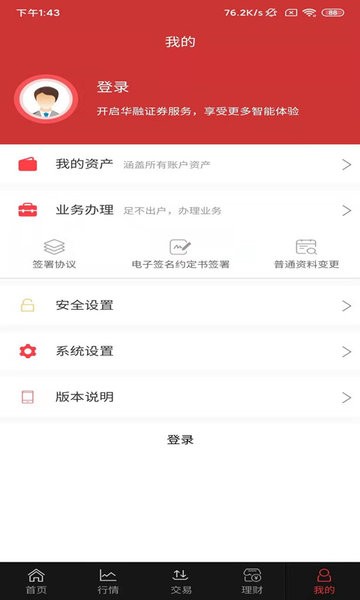 我的模块,可以进行登录、查看自己的资产信息,进行系统设置等操作。
