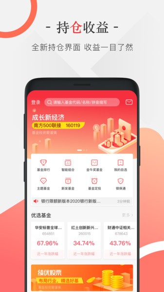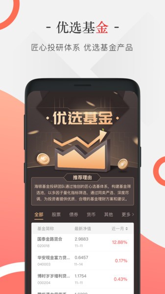 海银基金手机版是一款提供基金管理服务的金融理财产品,全新持仓界面,收益一目了然,紧跟实时热点,市场行情一手掌握,还提供多种基金产品选择,精选优质推荐,多元策略配置,带给你贴心的理财服务,理财更轻松,使用起来简单又方便!